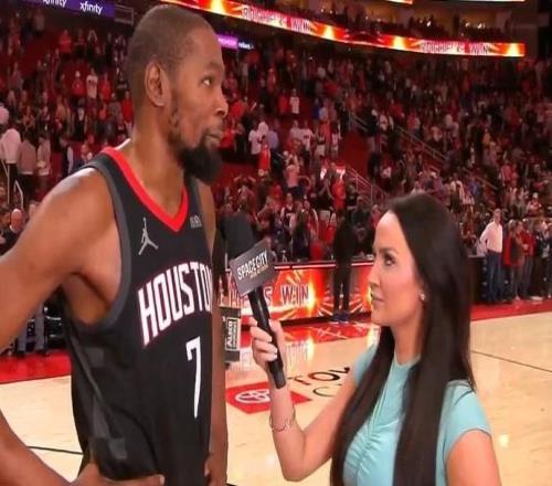 杜兰特绝杀太阳后现场采访一幕走红!主持人身材火辣专业知识过硬