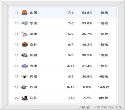 ②、前总冠军四川男篮14连败仍是联盟至今未尝一胜的球队;